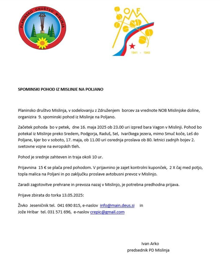 9. Spominski pohod iz Mislinje na Poljano