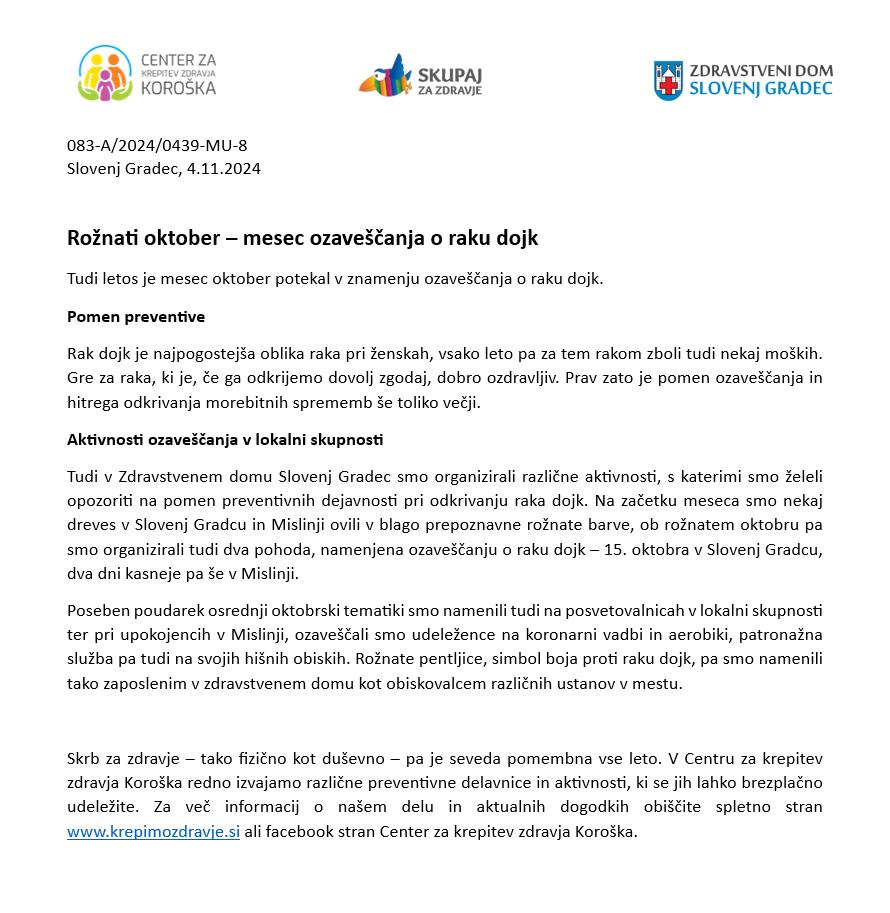 Rožnati oktober – mesec ozaveščanja o raku dojk