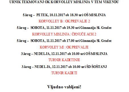 URNIK TEKMOVANJ OK KORVOLLEY