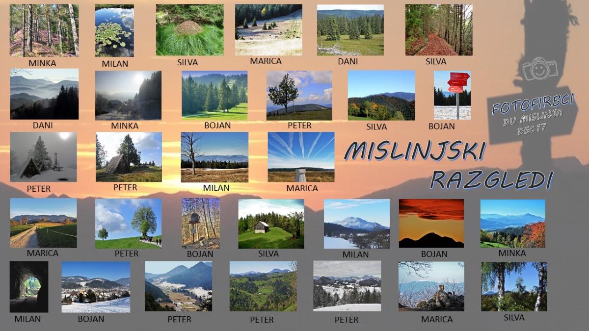 Ker v Mislinji gostimo srečanje Planinske zveze Slovenije, smo Fotofirbci iz DU Mislinja v razstavišču »Ob stopnišču« v Lopanu pripravili fotografsko razstavo z naslovom »Mislinjski razgledi«. S to razstavo želimo pokazati nekatere čudovite poglede na hribe in doline z razgledišč, ki smo jih obiskali. Pa ne samo gostom na srečanju planincev, ampak tudi vsem »firbčnim« krajanom, ko boste obiskali bogate predpraznične prireditve ali ko boste šli po nakupih. Naj vam ob tem povabilu tudi zaželimo prijeten praznični december in obilo lepih trenutkov v prihajajočem letu.