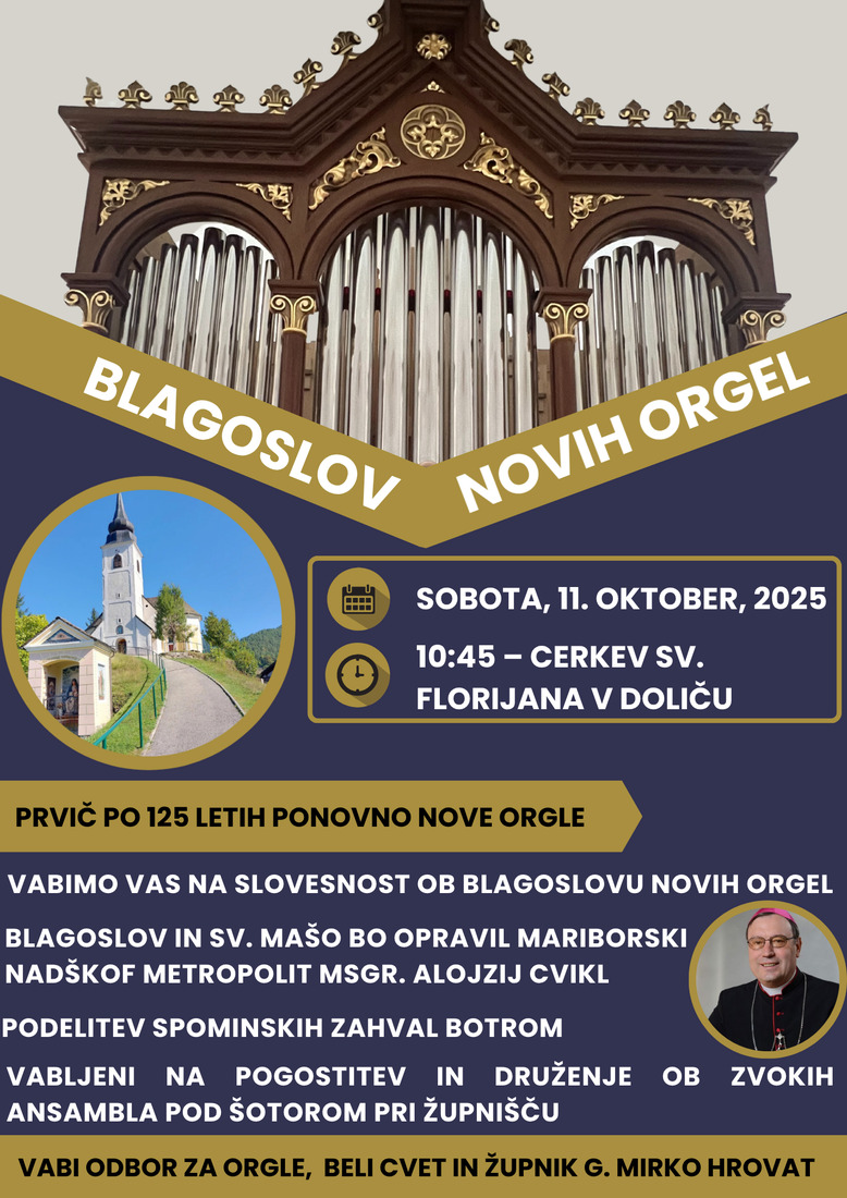 Z veseljem vabimo vse krajanke in krajane, pa tudi ostale občanke in občane ter obiskovalce od drugod, da se nam pridružite na tej posebni slovesnosti blagoslova in prvega igranja novih orgel.
