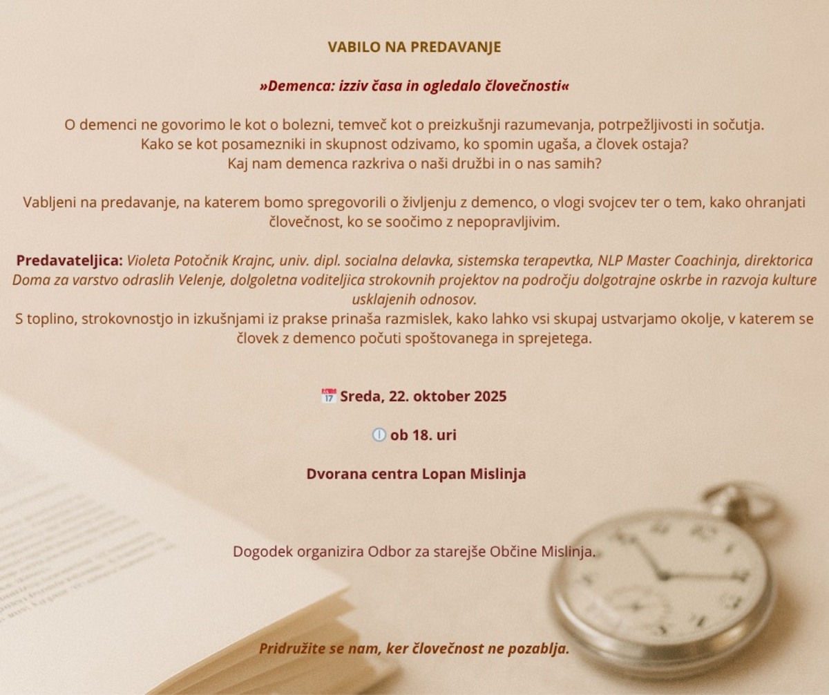 Predavanje »Demenca: izziv časa in ogledalo človečnosti.«