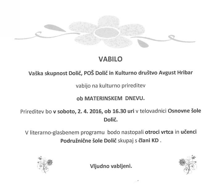 Prireditev ob MATERINSKEM DNEVU