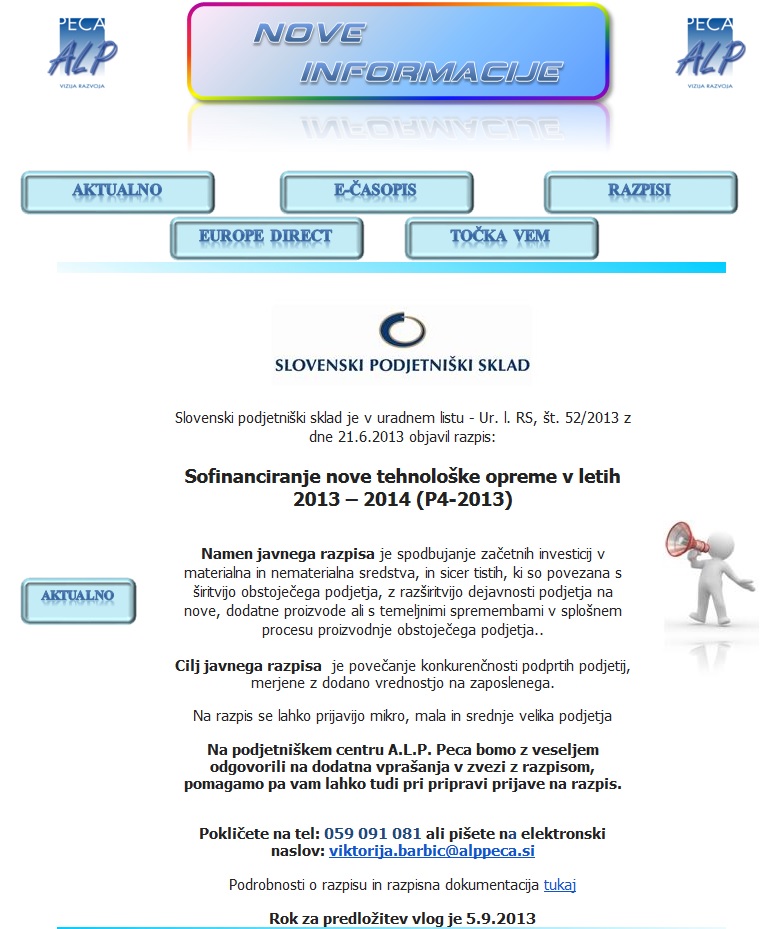 RAZPIS: SOFINANCIRANJE NOVE TEHNOLOŠKE OPREME 2013-2014 (P4-2013)